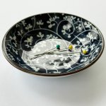 This porcelain ceramic dish measures 4" A strong magnet on bottom secures your pins.